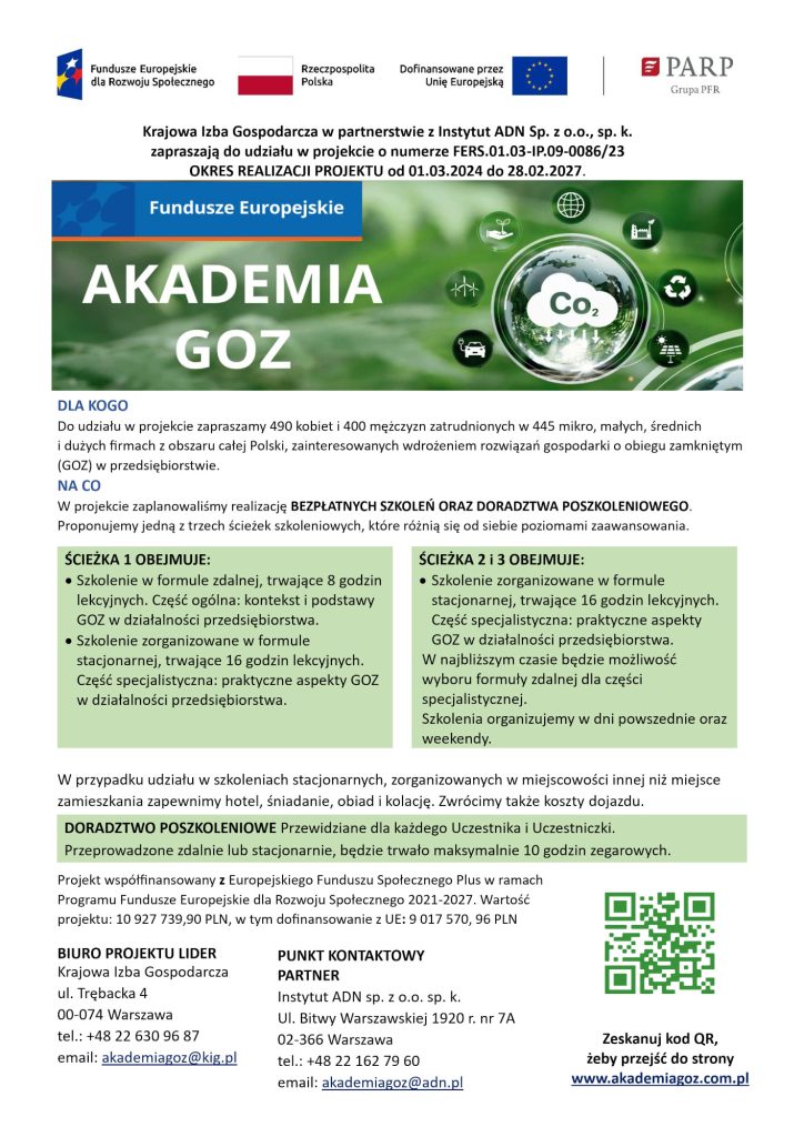 Szkolenia dla zatrudnionych w mikro, małych, średnich i dużych firmach z obszaru całej Polski, zainteresowanych wdrożeniem rozwiązań gospodarki o obiegu zamkniętym (GOZ) w przedsiębiorstwie.